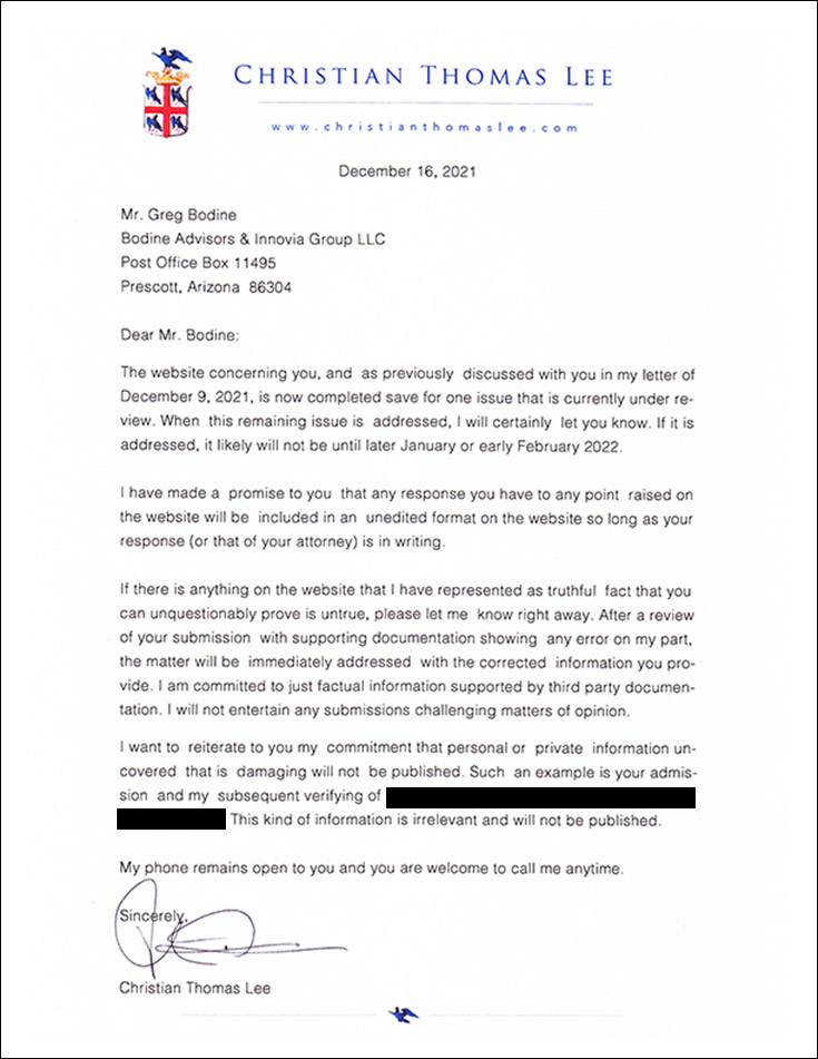 - Mr. Bodine's Unedited December 17, 2021 Response -