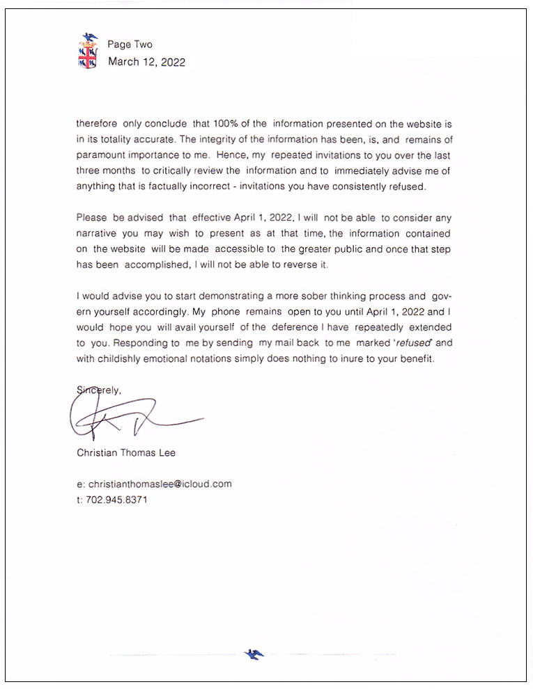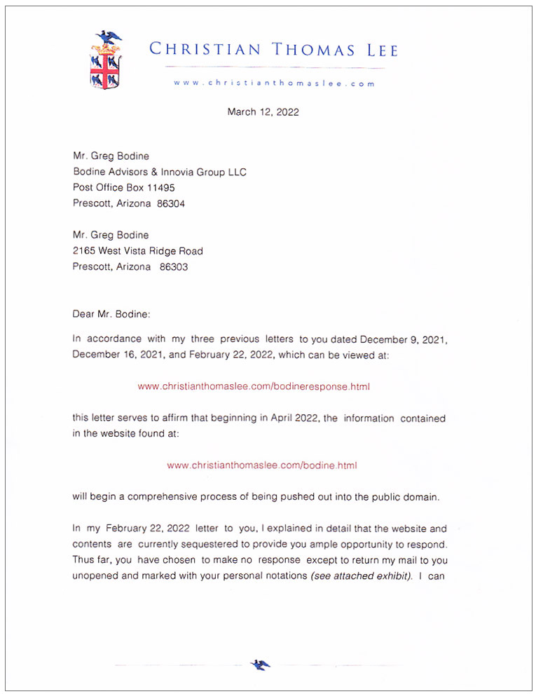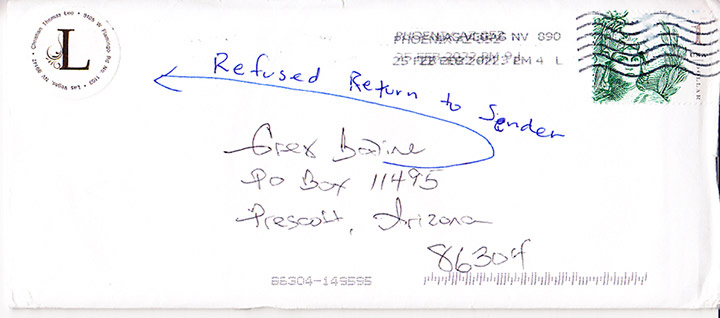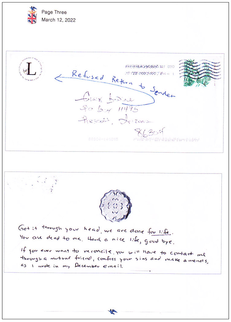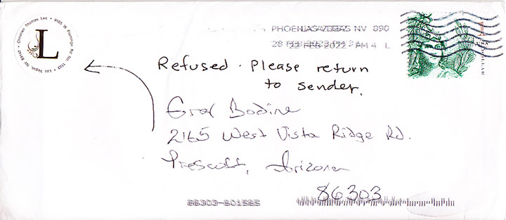 - Mr. Bodine's March 10, 2022 Response: Refused Mail with Mr. Bodine's Notations -